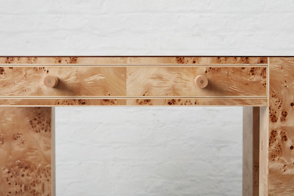 H. Miller Bros were approached by Studio Ashby with the tantalising idea of a games table, made in poplar burr and formed so that the table top and legs defined the edges of a crisp cube shape. The top leaf would be able to flip and rotate between a backgammon and chessboard.