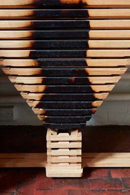Once made, the piece was set on fire in a public ‘Burn Ceremony’ in the garden at Red House. Burning represents the creative destruction signalled in tending the flame. The charred timber references the cast iron of the missing Red House range, and the use of fire as a tool welds the design to the original range, rekindling the fire of the solid-fuel stove that it once contained. The charred surface of the timber also reflects the analogue thinking and making processes Morris championed - engaging materials with head, heart and hand.